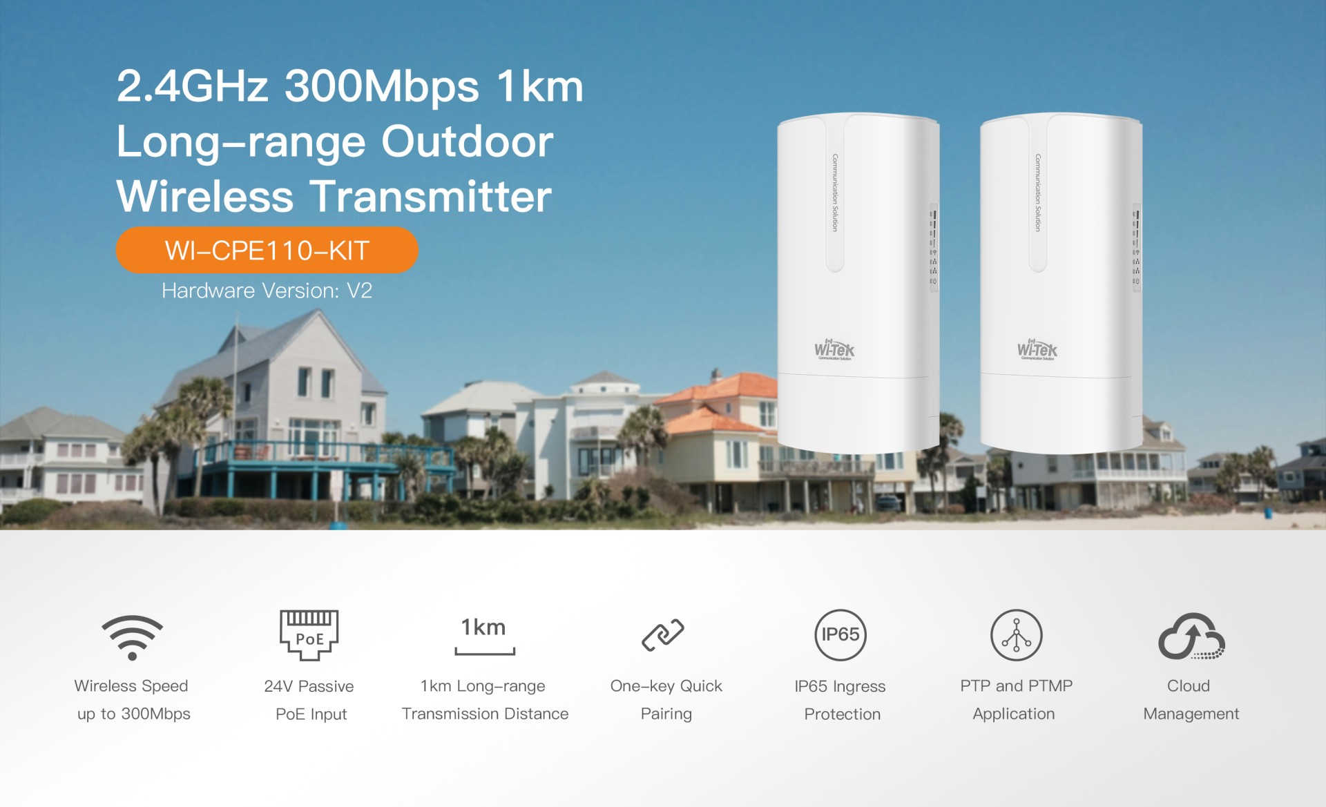 WI-CPE110-KIT (V2) 2.4 GHz 300Mbps 1km Wireless Noktadan Noktaya Aktarım Cihazı